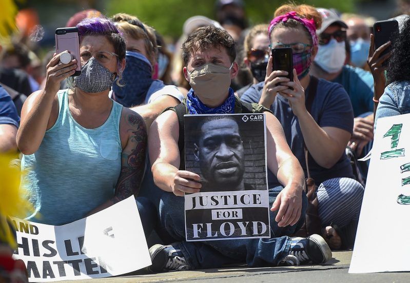 Dos años y medio de cárcel para Thomas Lane, expolicía acusado de la muerte de George Floyd. Personas se manifiestan en la calles de Saint Paul, Minesota. Foto de EFE/ Craig Lassig.