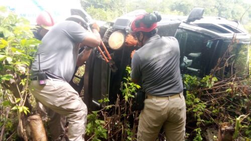 TULUM.- La mañana de este lunes, dos mujeres que viajaban a bordo de una camioneta tipo Jeep sufrieron un accidente vehicular luego de salirse de la vía de rodamiento en el kilómetro 235 de la carretera federal Tulum–Playa del Carmen.