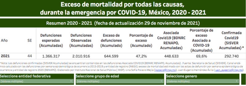 La Secretaría de Salud informó que México registra un exceso de mortalidad acumulado de 644 mil 599 muertes bajo el contexto de la pandemia de COVID-19.