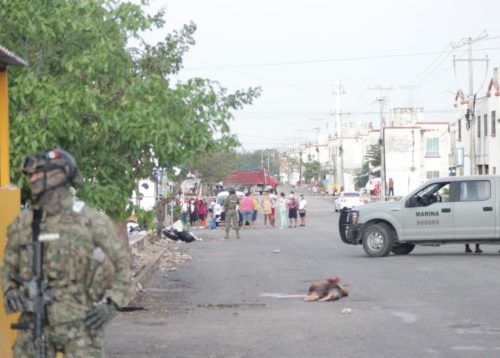 El cuerpo se encontraba sobre la cinta asfáltica frente a la entrada de la escuela primaria “Sentimientos de la Nación” localizada en la región 259, manzana 105, en la avenida Margaritas esquina con Bugambilias, del Fraccionamiento Villas Otoch Paraíso.