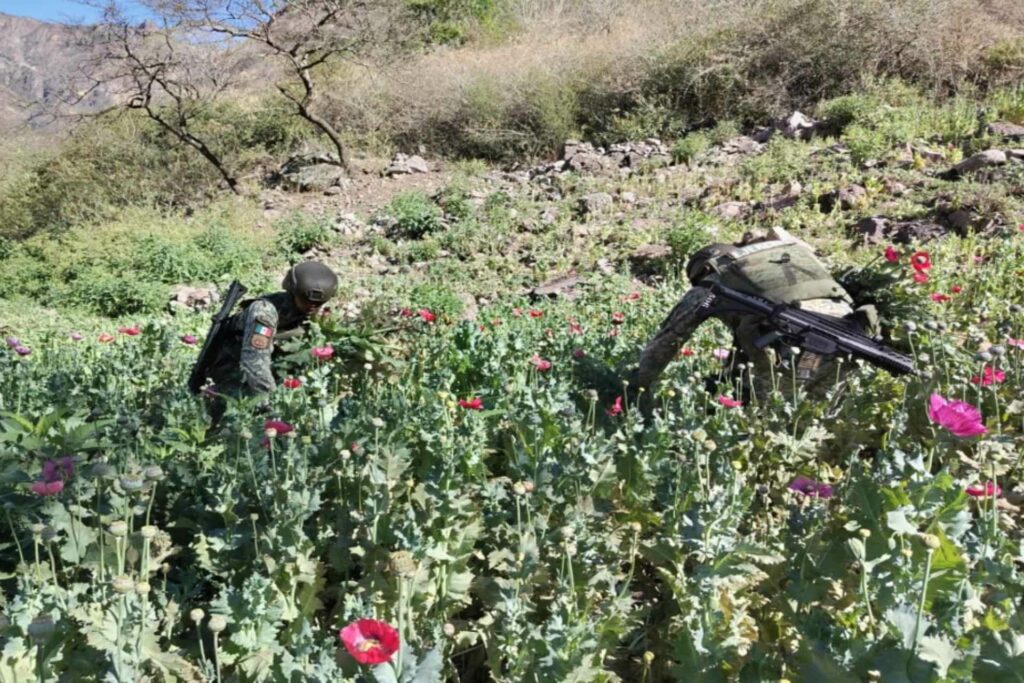Elementos del Ejército Mexicano destruyeron 459 plantíos de amapola y 212 plantíos de mariguana en cinco estados.