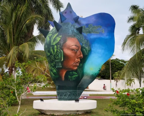 Chetumal, 29 de abril de 2026.- En la Avenida Universidad con Héroes de Chapultepec, una zona emblemática del barrio bravo de Chetumal, presentó la rehabilitación del “Caracol”, de Gerardo Barragán, que ilustra la conexión entre la mujer, la naturaleza y el mundo Maya.