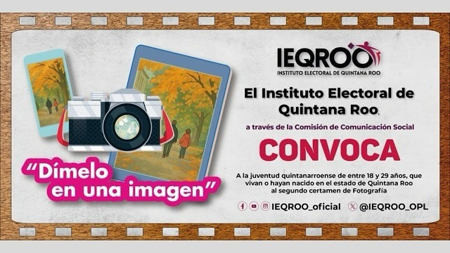 Chetumal, Quintana Roo; a 19 de mayo. – El Instituto Electoral de Quintana Roo, a través de la Comisión de Comunicación Social hace una invitación a la juventud quintanarroense de 18 a 29 años a participar, en el Segundo Certamen “Dímelo en una imagen”. Las fotografías se recibirán vía correo electrónico a: dimeloenunaimagen@ieqroo.org.mx a partir de la publicación de la presente convocatoria y hasta el 16 de julio del 2025 a las 18:00 horas.