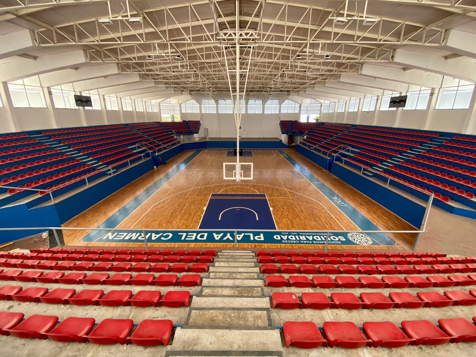 PLAYA DEL CARMEN, Quintana Roo, 11 de noviembre. – La icónica instalación conocida como “Poliforum” dentro de la Unidad Deportiva Playa del Carmen, recupera su brillo y esplendor gracias al compromiso con el deporte de la presidenta municipal de Solidaridad Lili Campos Miranda; luego de varios años que este gimnasio de usos múltiples no tuviera las condiciones óptimas para la práctica deportiva por el abandono en que lo tuvieron.