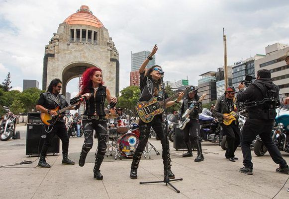 CIUDAD DE MÉXICO, 14 de Abril.- Entre aplausos y gritos de “viva el rock and roll”, esta tarde El Tri filmó el video de su sencillo Nacidos para rodar, en el Monumento a la Revolución, donde reunió a más de 60 motobikers.