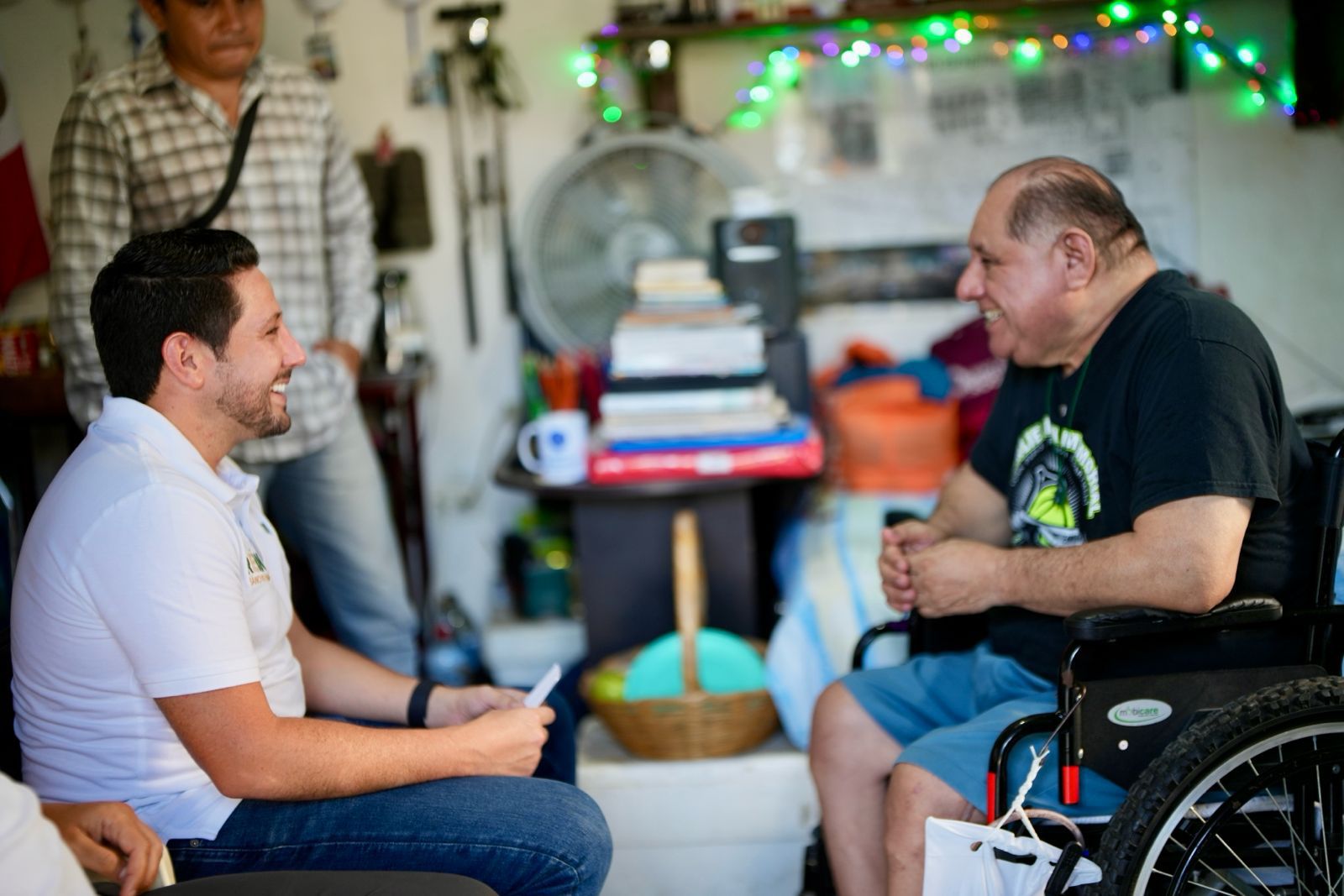 Durante su visita más reciente a Puerto Morelos, Renán Sánchez Tajonar se reunió con Pedro Góngora, simpatizante del Verde, a quien reconoció por su resiliencia ante momentos difíciles de salud y destacó la aprobación de programas sociales que han significado un verdadero alivio en su día a día.