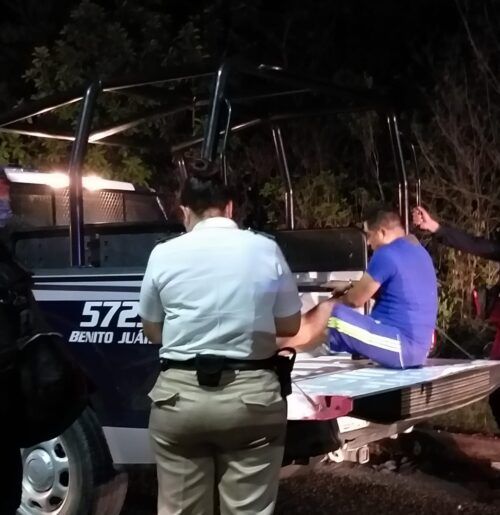 CANCÚN, Quintana Roo, 24 de abril.- Elementos de la Guardia Nacional chocaron a una patrulla de Seguridad Pública Municipal, cuando eran perseguidos por conducir en estado ebriedad. Uno resultó lesionado.