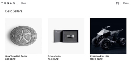 Ahora algunos de sus productos, como una hebilla de cinturón de Giga Texas, el Cyberquad for Kids y el Cyberwhistle se podrán comprar únicamente usando la criptomoneda meme, ya que no muestran ahora una opción para la venta en efectivo.