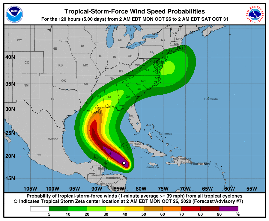 CANCÚN, Quintana Roo, 26 de octubre.-  La Tormenta Tropical (TT) “Zeta” se encuentra estacionada en el Mar Caribe, frente a las costas de Quintana Roo, favorecida por el frente frío N° 8  “que la mantiene en el mismo sitio”,  anunció el  gobernador Carlos Joaquín.