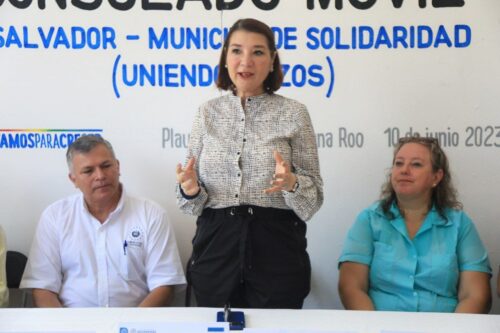 PLAYA DEL CARMEN, Quintana Roo, 11 de junio. – Para apoyar a los inmigrantes salvadoreños en la obtención de pasaporte y permiso migratorio, el gobierno municipal que dirige Lili Campos, a través de la Unidad de Atención al Migrante, trajo el Consulado Móvil de El Salvador a la colonia Colosio, de las 10 de la mañana a las 4 de la tarde.