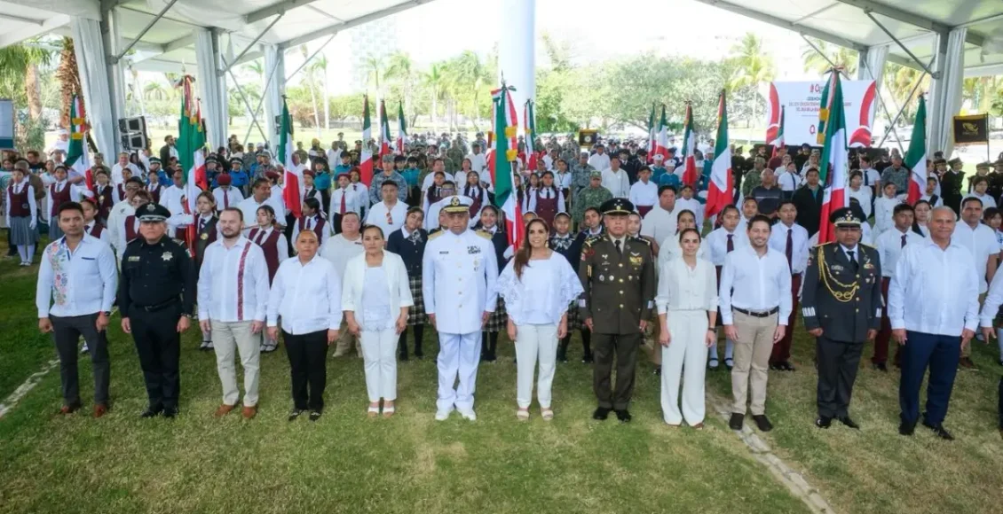 Cancún, 24 de febrero de 2026.- En el marco del 205 (ducentésimo quinto) aniversario del Día de la Bandera, la gobernadora Mara Lezama Espinosa encabezó en Cancún la ceremonia cívica conmemorativa, donde convocó a las juventudes a asumir un papel activo en la construcción de la paz todos los días, el respeto y la unidad … Sigue leyendo En el 205 aniversario del Día de la Bandera, Mara Lezama convoca a juventudes a fortalecer la cultura de paz y los valores cívicos