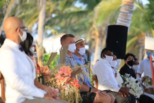 PLAYA DEL CARMEN, Quintana Roo, 15 de febrero. – Con motivo del Día del Amor y la Amistad, la alcaldesa Laura Beristain Navarrete; la presidenta honoraria del DIF, Karla Robles Miranda, y la directora estatal de ese organismo, María Elba Carranza Aguirre, siguiendo todos los protocolos de la Nueva Normalidad, atestiguaron la unión civil de 6 parejas en la playa del parque Fundadores, contribuyendo a fortalecer el tejido social y la unión familiar.
