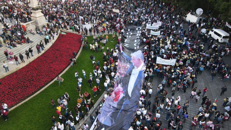 El presidente Andrés Manuel López Obrador encabezó una marcha multitudinaria del Ángel de la Independencia al Zócalo capitalino.
