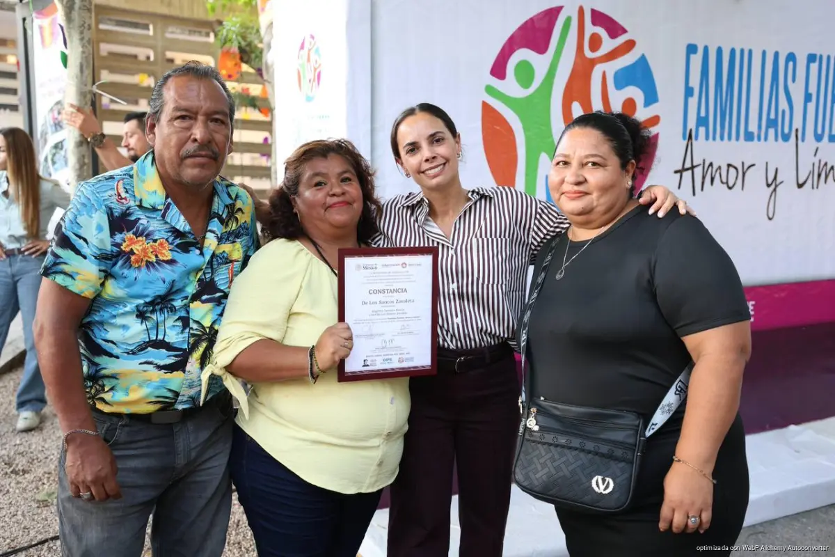 Cancún, Q. R., a 09 de abril de 2026.- Con gran orgullo, la Presidenta Municipal, Ana Paty Peralta y la Coordinadora General del programa Mujer es Poder, Gabriela Briget Ortega Aviña, en representación de la gobernadora Mara Lezama, encabezaron en el domo del Mercado Lak’ín, en la SM 259, la clausura del primer taller “Familias Fuertes, Amor y Límites” y entregaron 15 reconocimientos a hogares que concluyeron con éxito esta importante capacitación.