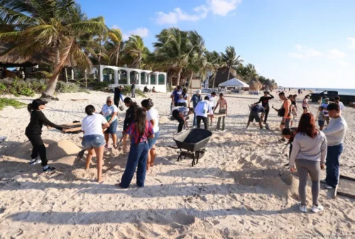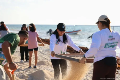 Durante las labores, la secretaria de Medio Ambiente, Aimee Rodríguez Vivas, informó que se realizaron acciones de recolección de sargazo y cribado de arena para retirar microplásticos, contribuyendo a la protección de los ecosistemas costeros.