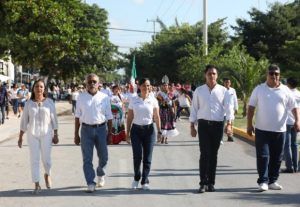 Caminaron con la presidenta municipal, el secretario general del Ayuntamiento, Francisco Mendoza Reyna, regidores y el delegado municipal Leouvín Moysés Medina Cahuich. La marcha partió del domo deportivo, recorrió calles principales y concluyó con una ceremonia cívica en el campo de béisbol.