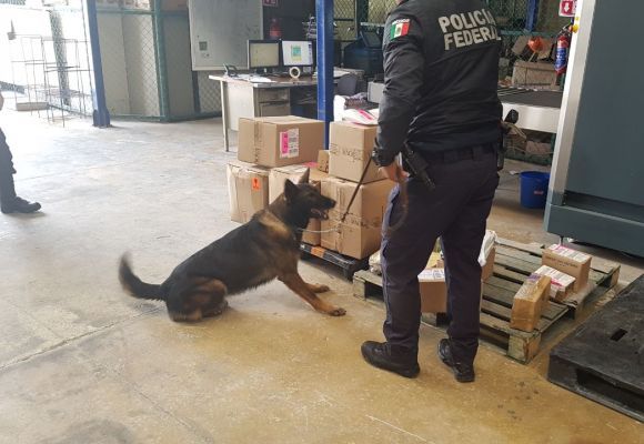 CANCÚN, Quintana Roo, 23 de enero.- En el marco del operativo para prevenir el tráfico de drogas y sustancias o productos ilícitos en paqueterías, se llevó a cabo una revisión a la empresa de paquetería Fedex en donde elementos de la policía federal con la ayuda de un binomio canino se detecto un sobre que contenía hierba con características propias a la cannabis.