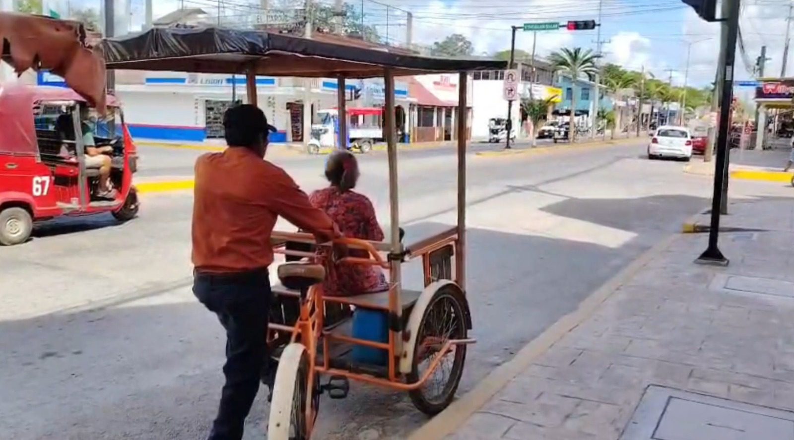 Don José Cástulo Cumul Dzul, con 38 años dedicado al oficio, relató que los ingresos son reducidos y que en temporada de bajas temperaturas la demanda cae drásticamente, ya que los usuarios prefieren opciones más rápidas y resguardadas del frío, como los motocarros. “La gente busca ir rápido y con seguro. Poco hacemos; a veces cien pesos, a veces 80, como caiga. Ya solo quedamos como seis tricitaxistas, no hay más”, explicó.