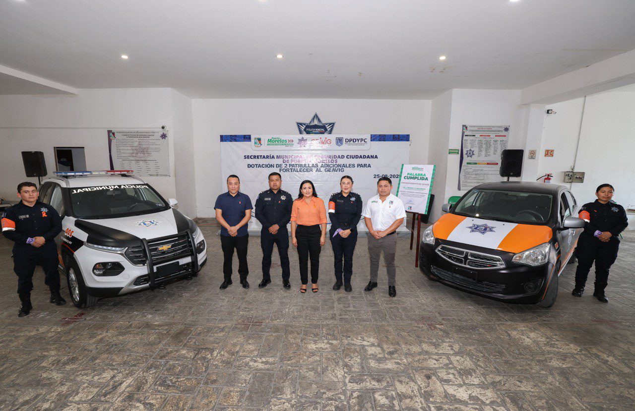 Al dar la bienvenida el Tte. Nav. Imp. Manuel Alejandro Nava García, Secretario Municipal de Seguridad Ciudadana de Puerto Morelos expresó su agradecimiento a la presidenta Blanca Merari ya que las dos patrullas adicionales son una inversión estratégica que fortalecerá GEAVIG.