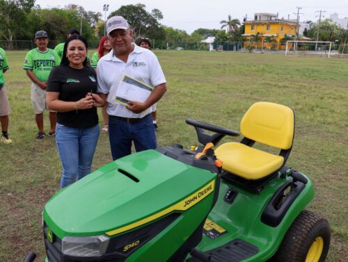 Por su parte, el director del Instituto Municipal del Deporte Renán Cruz Ramírez agradeció el esfuerzo de la autoridad por el equipamiento para dar un mantenimiento adecuado a las dos canchas de futbol, una ubicado en el Deportivo Pescadores y otra en Villas Morelos, así como el campo de beisbol también en Pescadores, dentro de la cabecera municipal; además de una cancha de futbol y beisbol en Leona Vicario.