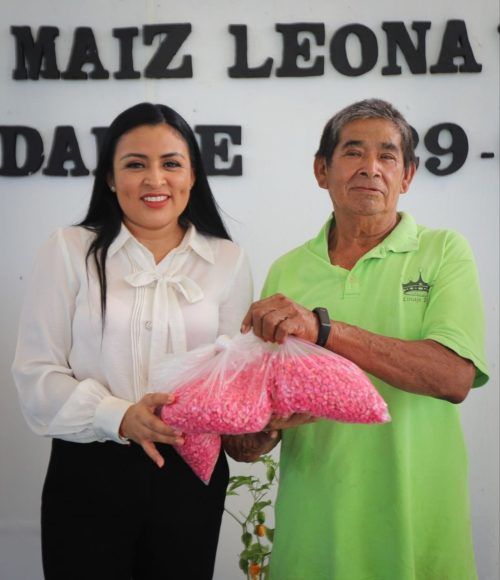 PUERTO MORELOS, Quintana Roo, 29 de agosto. – Con el propósito de seguir impulsando la economía de las familias y la reactivación del campo de Leona Vicario, la presidenta municipal Blanca Merari Tziu Muñoz entregó hoy semillas de maíz mejoradas, exclusivamente para siembra, a productores de la localidad.