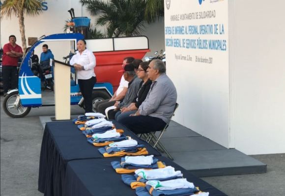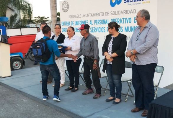 PLAYA DEL CARMEN, Quintana Roo, 26 de diciembre.- Entregó la presidenta municipal de Solidaridad Cristina Torres Gómez uniformes a los más de 650 trabajadores de la Dirección de Servicios Públicos; la alcaldesa señaló que en lo que va de su administración la plantilla laboral en esta área ha crecido cerca del 50 por ciento.