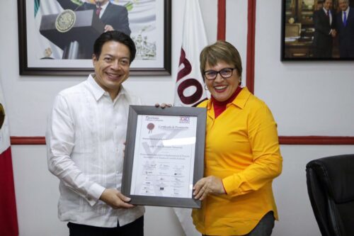 Entrega Laura Beristain resultados a Mario Delgado y el Premio al Buen Gobierno 2020