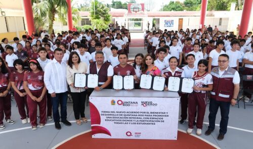 Por su parte, José Alfredo Contreras Méndez, presidente municipal de Bacalar, dio la bienvenida y destacó la importancia de trabajar en coordinación con la gobernadora Mara Lezama, para que la prosperidad compartida llegue a todas y todos los quintanarroenses con buena infraestructura educativa.