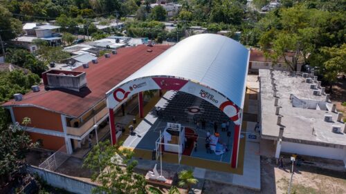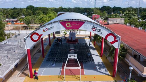Bacalar.- Para avanzar en la gran misión de construir 1,109 domos en las escuelas públicas de todo el estado, la gobernadora Mara Lezama Espinosa inauguró el de la Escuela Secundaria Técnica Núm. 34 “Ernesto Novelo y Novelo” en Bacalar, en beneficio directo de 275 estudiantes del turno matutino, entre ellos 154 mujeres y 121 hombres.