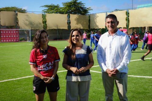 Bacalar, 30 de diciembre de 2025.- A partir de hoy, Quintana Roo tiene su primer campo resiliente al cambio climático en Bacalar, como resultado de un trabajo coordinado con la organización Girls United y el Ayuntamiento, informó la gobernadora Mara Lezama Espinosa, acompañada de Romina Catalayud, una de las fundadoras de la organización.