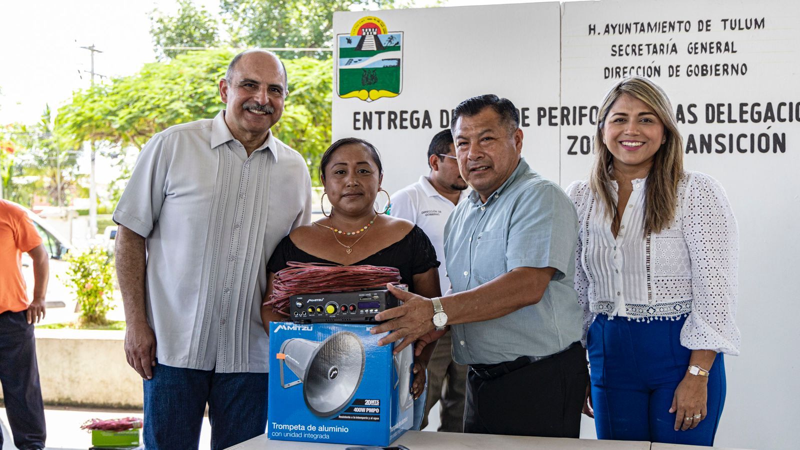 Tulum, 14 septiembre del 2022.- El presidente municipal de Tulum, Marciano Dzul Caamal hizo entrega de equipos de perifoneo a los delegados de las comunidades de la zona maya y zona de transición en el noveno municipio, como parte del compromiso para la atención a sus necesidades.