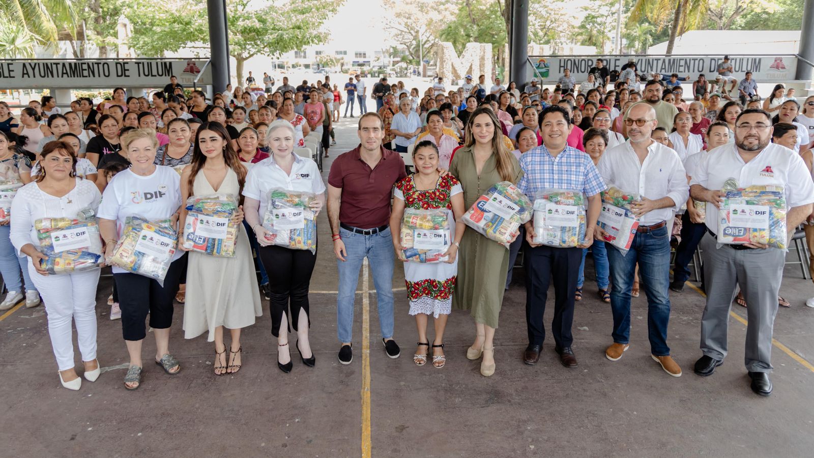 TULUM, Quintana Roo, 03 de julio de 2025.- Siguiendo con el compromiso de atender el bienestar comunitario de las madres de familia tulumnenses, el Presidente Municipal, Diego Castañón Trejo y Belia Beltrán Aguilera, Directora General del Sistema para el Desarrollo Integral de la Familia, entregaron más de 200 apoyos alimentarios para seguir fomentando el sano desarrollo familiar a través de productos de canasta básica de calidad.
