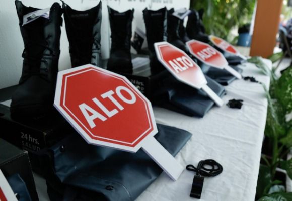 Durante el evento se hizo entrega de 200 silbatos, 200 paletas de señalamiento de “alto” color rojo con letras blancas, 200 botas militares, 200 impermeables tipo gabardina y 400 cono naranja grande, lo anterior con el objetivo de que el personal de la Dirección de Participación Ciudadana y Prevención del Delito cuenten con todas sus herramientas para el desempeño de sus funciones.