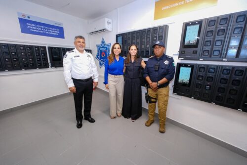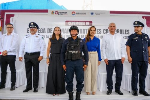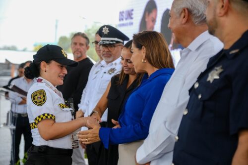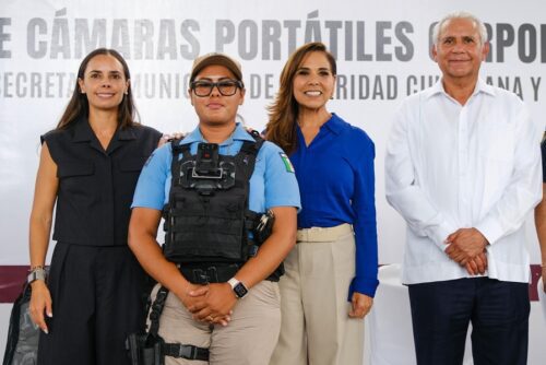 Cancún.- Al participar en la entrega de 725 cámaras corporales a elementos de la Secretaría Municipal de Seguridad Ciudadana y Tránsito de Benito Juárez, la gobernadora Mara Lezama Espinosa afirmó que esto significa que ahora cuentan con mejores herramientas, que la ciudadanía confía más en las y los policías, y que se cortan de raíz prácticas que tanto daño le hacen a la seguridad.