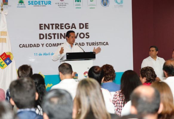 Asimismo el Gobernador Carlos Joaquín dijo que su administración impulsa la competitividad y calidad turística, con la entrega de 564 distintivos a 125 empresas turísticas que contribuyen al desarrollo integral, de las cuales 10 corresponden al “S” por el desarrollo de productos turísticos con sustentabilidad; a 12 por implementar la metodología desarrollada por la Secretaría Federal de Turismo; en Distintivo “H” a 59 empresas que cumplen con los estándares de higiene que marca la Norma Mexicana NMX-F605 NORMEX 2004 y en Distintivos “M” a 40 empresas por implementar el Programa de Calidad Moderniza.