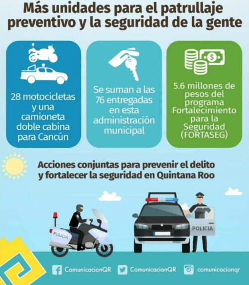 Estas unidades, que se suman a las 76 entregadas en la administración de la presidenta Mara Lezama, serán un refuerzo para las corporaciones policiacas en su tarea de brindar mayor seguridad a quienes viven en Quintana Roo y a la población de Cancún.