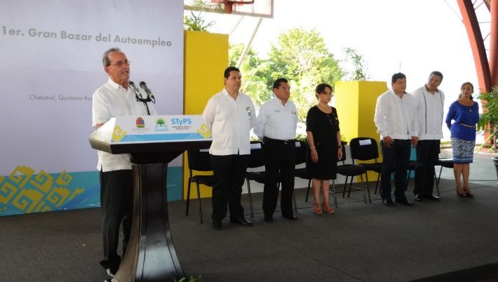 CHETUMAL, Quintana Roo, 30 de Marzo.- “En este gobierno del cambio todos juntos sumamos esfuerzos para garantizarle a cada quintanarroense que cuente con un empleo formal, bien pagado y pueda con su familia acceder a más y mejores oportunidades de desarrollo”, dijo hoy a nombre del Gobernador Carlos Joaquín, el secretario de Gobierno Francisco López Mena, durante la entrega de recursos, maquinaria, equipo y herramientas a personal del programa “Bécate” en el marco de la inauguración del Primer Gran Bazar del Autoempleo.