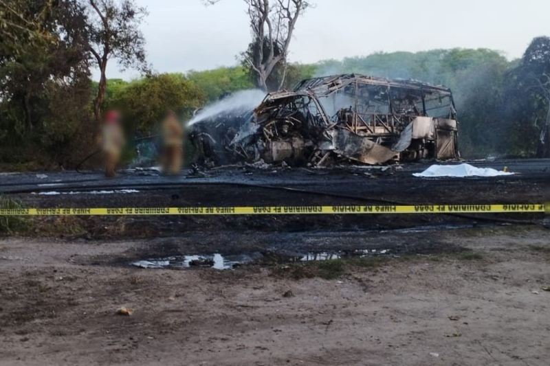De acuerdo con la Fiscalía General de Justicia de Tamaulipas, el autobús de pasajeros, que iba al tope de su capacidad, chocó contra el tráiler de doble remolque que transportaba un material químico inflamable llamado varsol, una mezcla de hidrocarburos alifáticos derivados del petróleo.