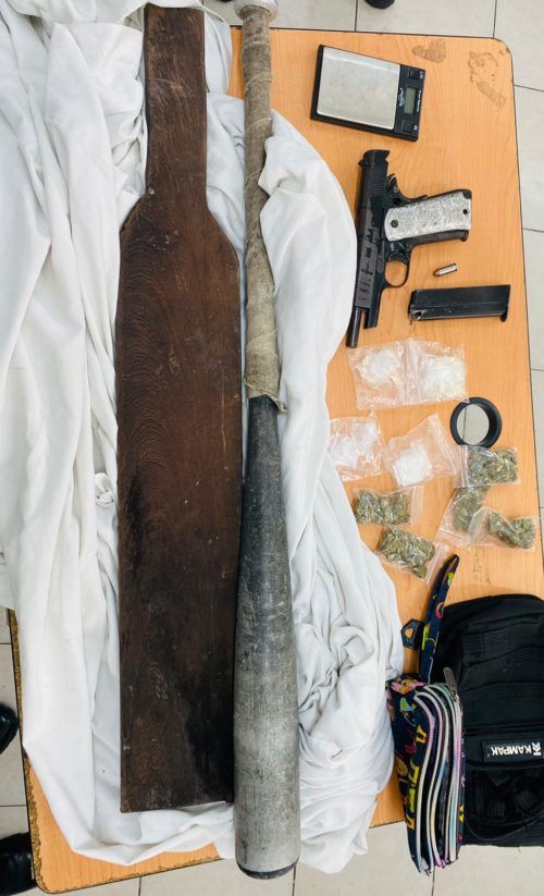Los ahora detenidos fueron ubicados sobre la calle Espátulas como resultado de un operativo, cerrándoles el paso con las unidades para evitar que emprendieran la huida. Al realizar una inspección de seguridad a Mateo “N” tenía en su posesión un arma de fuego, tipo escuadra, mientras que Yesi “N” tenía entre sus pertenencias 5 bolsas con vegetal verde similar a la marihuana, 5 bolsas con una sustancia cristalina de las características de la droga llamada cristal, 9 bolas con polvo blanco al parecer cocaína y 25 bolsas con una sustancia sólida de como la droga llamada piedra.