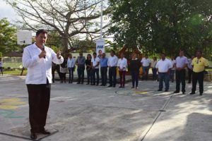 PLAYA DEL CARMEN, Quintana Roo, 10 de enero.- En representación de la Presidenta Municipal de Solidaridad, Cristina Torres Gómez, el Secretario General del Ayuntamiento, Alberto Farfán Bravo, encabezó el regreso a clases del turno vespertino de la Escuela Primaria “Adriana Cupul Itza”, al llevar el programa “Acción Escolar” para escuchar propuestas y necesidades del plantel, por parte de los padres de familia.
