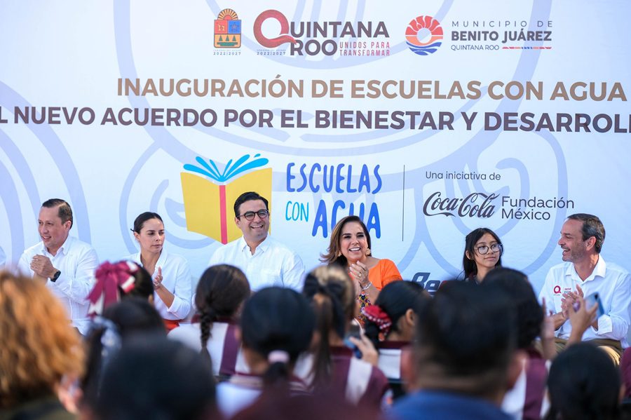 Cancún, 25 de febrero de 2025.– Al inaugurar el proyecto “Escuelas con Agua”, una iniciativa en colaboración con Fundación Coca-Cola México, Grupo BEPENSA y entidades gubernamentales del estado, como la Secretaría de Desarrollo Económico, la gobernadora Mara Lezama Espinosa expresó que no se trata simplemente de un programa, sino de abrir las puertas de un futuro más justo, un acto de amor hacia nuestra niñez.