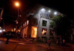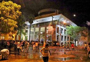 Con estribillos tales como “Dictadura nunca más”, centenares de opositores ingresaron al edificio legislativo luego de destruir portones, vallas y ventanales, y provocaron un incendio.