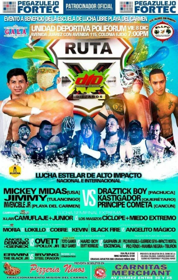 Con una cartelera de luchadores nacionales y extranjeros los aficionados del deporte de los costalazos, vuelos y llaves podrán también ayudar los deportistas locales ya que parte de las localidades serán donadas a la escuela de Lucha libre de Playa del Carmen.