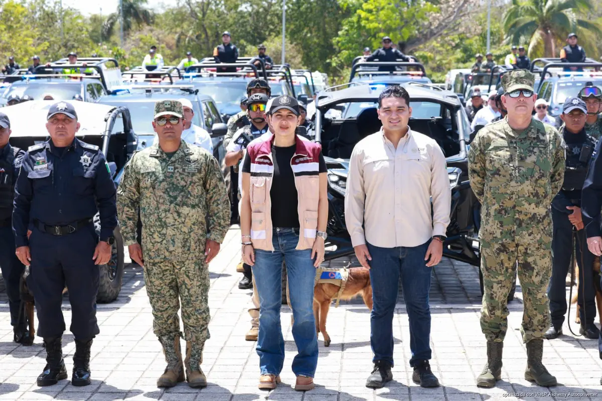 Playa del Carmen, Quintana Roo, 31 de marzo de 2026.— La presidenta municipal Estefanía Mercado dio el banderazo de inicio del Operativo Vacacional “Semana Santa 2026”, desde la explanada del nuevo Palacio Municipal, con la participación de más de 500 elementos de instituciones municipales, estatales y federales, con el objetivo de salvaguardar la seguridad de habitantes y visitantes durante la temporada.