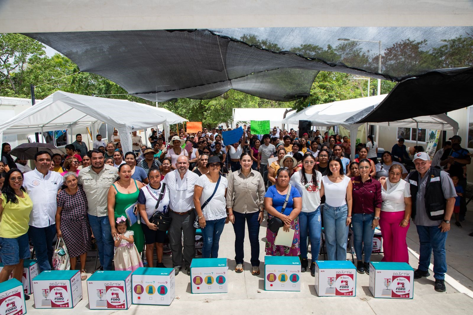 Playa del Carmen, Quintana Roo, 14 de junio de 2025.— La presidenta municipal Estefanía Mercado encabezó este sábado una jornada histórica en la comunidad rural de Nuevo Noh-Bec, donde entregó 90 máquinas de coser a mujeres de la zona como parte del programa FARO (Fortalecimiento de los Oficios), impulsado en coordinación con el Gobierno del Estado para fomentar el autoempleo y fortalecer la economía familiar.