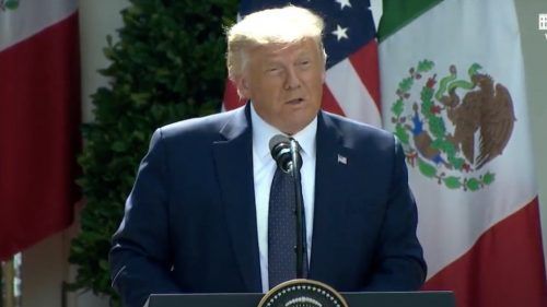 El presidente de Estados Unidos, Donald Trump, y el presidente mexicano Andrés Manuel López Obrador, ofrecen mensaje a medios tras haber sostenido reunión de trabajo entre comitivas con motivo de la visita oficial de trabajo del mandatario mexicano.