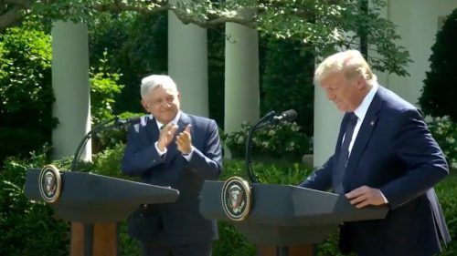 Tanto Trump como López Obrador evitaron darse un apretón de manos y no llevaban mascarilla puesta.