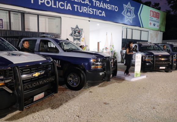 PUERTO MORELOS, Quintana Roo, 26 de octubre.- La presidenta municipal Laura Fernández Piña dio esta noche el banderazo de inicio de operaciones de las patrullas donadas por el gobernador Carlos Joaquín González al municipio de Puerto Morelos, con el objetivo de reforzar la seguridad de la población.
