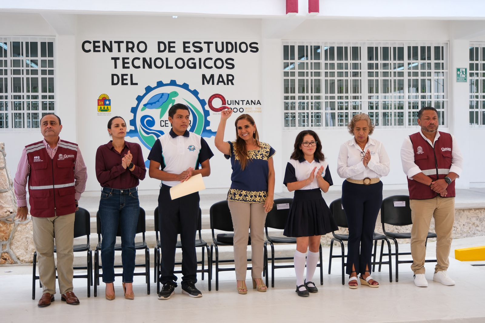 CANCÚN, Quintana Roo, 30 de enero. – Más de mil 190 estudiantes del Centro de Estudios Tecnológicos del Mar (CETMAR) No. 41 estrenan 8 nuevas aulas didácticas totalmente equipadas y obras complementarias, que recibieron de la gobernadora Mara Lezama Espinosa al cumplir una palabra empeñada y en la que se invirtió dinero del pueblo para el pueblo.