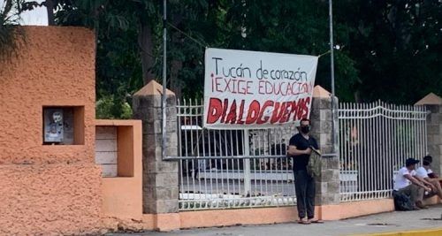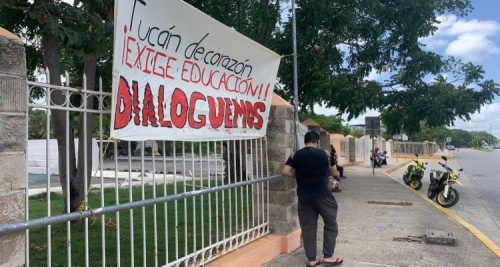 En una tarjeta informativa, la dirección de tránsito municipal indicó que aproximadamente unos 25 alumnos se manifestaron de manera pacífica afuera del plantel, que se localiza en la avenida Kabah.